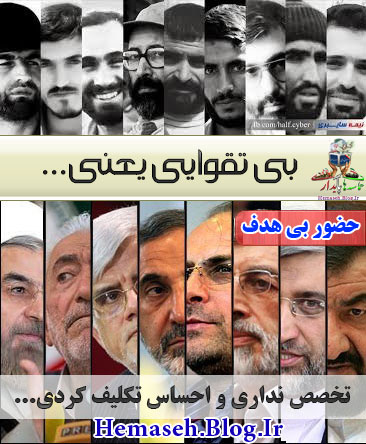 »»» مد شده نامزدهای ریاست جمهوری ، چپ و راست از خودشون عکس های جبهه و جنگ میذارن.اگه عیار مردی و مردونگی جبهه و جنگه ، کل 70 میلیون جمعیت ایران زمین با غیرت و مردن.از ما خوش غیرت تر هم هست؟!