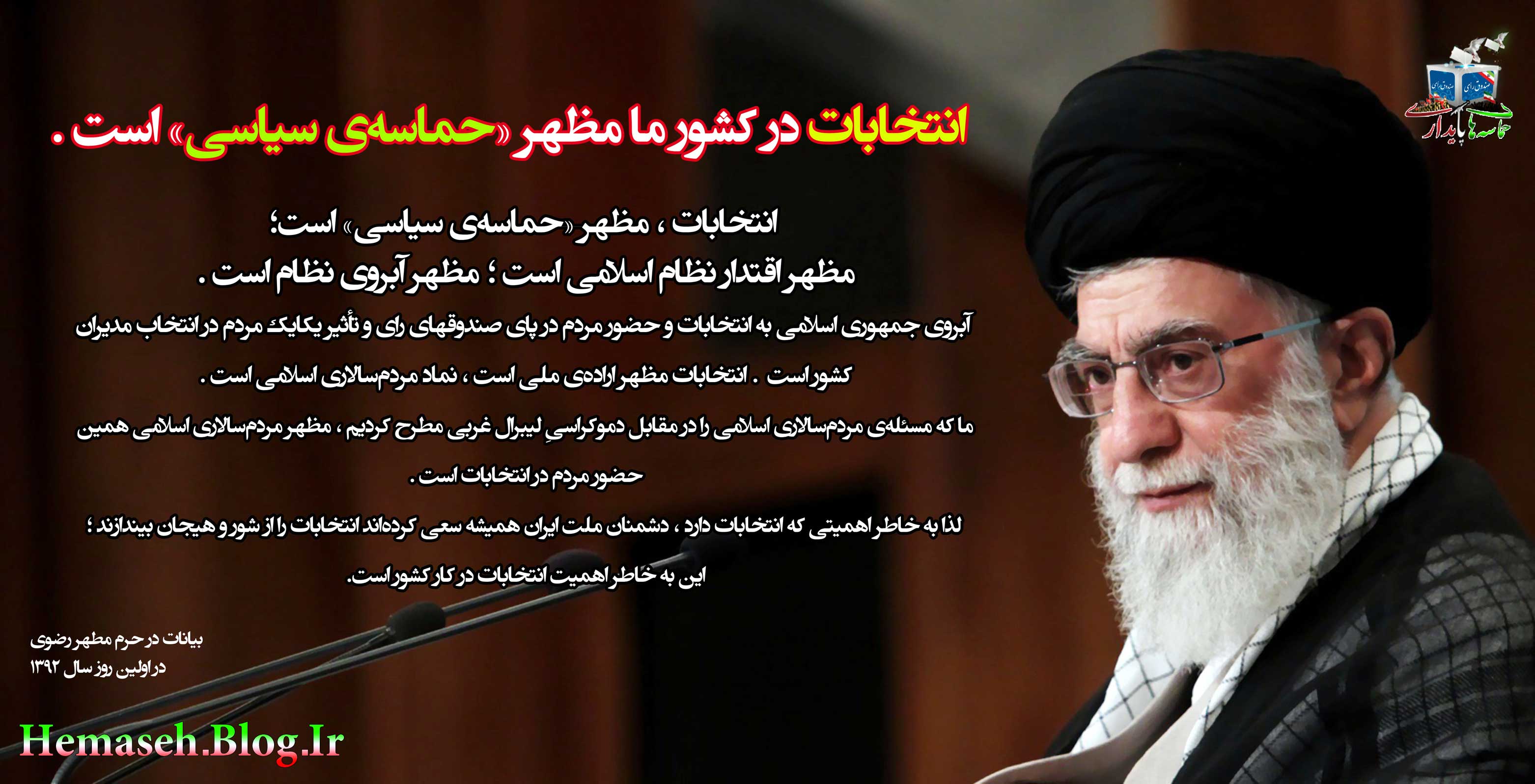 انتخابات ریاست جمهوری یک حرکت بزرگ در عرصه سرنوشت آینده مردم در حکومت اسلامی آنچه حضرت امام خامنه ای روز چهارشنبه (۱۳۹۲/۲/۲۵) به آن اشاره کردند: «امروز انتخابات شما به یک موضوع مهم بینالمللى تبدیل شده است. دستگاههاى فکرى دشمنان نشستهاند رصد میکنند مقدمات این انتخابات را، این حادثهى بزرگ را؛ دارند نگاه میکنند؛ نقشه هم دارند،