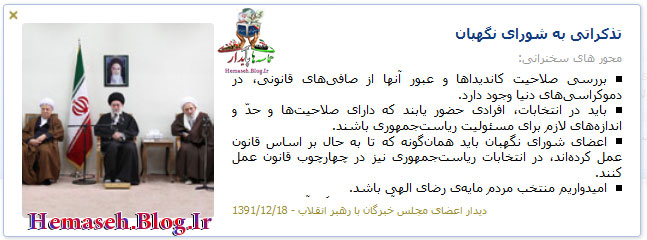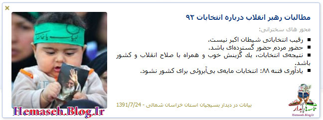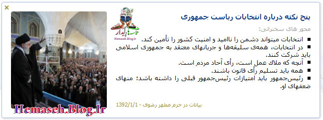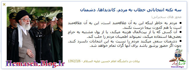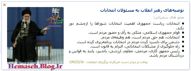 نوار زمان بیانات رهبر انقلاب درباره انتخابات 92